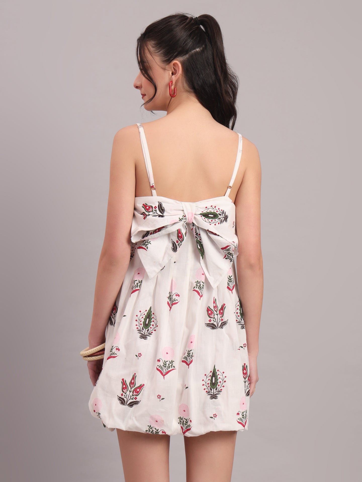 A trendy balloon flare but make it pretty. Featuring the cutest choice in the wardrobe this mini dress has adjustable straps and is pleated all over to give that perfect fit and flare and it comes with the prettiest bow tie up at the back